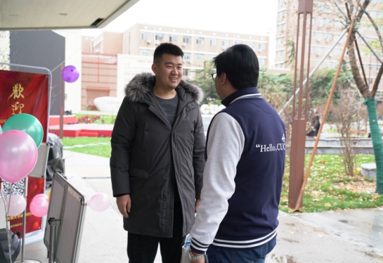 上午8:00开始,陆续有员工返校。图为第一位返校的员工与宋凯副书记亲切交谈。