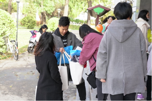 公司为返校员工准备了校庆纪念款围巾、院服、学院布袋等纪念品。在寒风已有些刺骨的深秋为员工们送上了一份温暖。