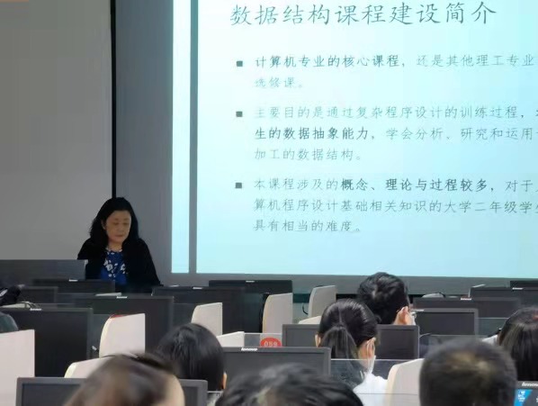 第一部分,周菁老师公开演示计算机类经典课程《数据结构》教学片段,通过精美的课件,幽默的语言,亲切的笑容,润物细无声的传道解惑,从课程发展历史沿革、课程教学目标定位、课程教材选用、课程主要内容、实践教学组织情况、考核内容方法等方面开展介绍,并详细阐述了该门优质示范课程在申请优质示范课程建设中自己总结及应用的特点和创新点,以及给与其他老师们的经验和总结。