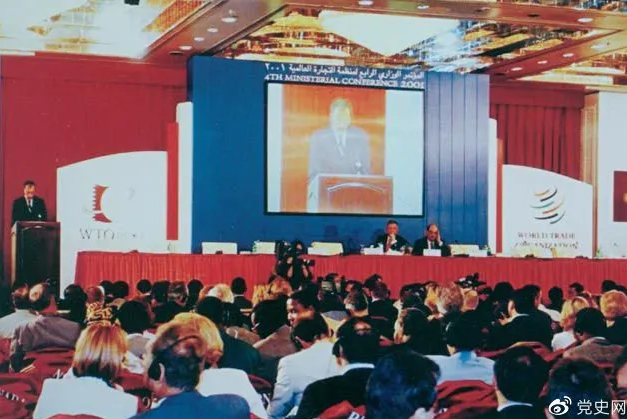 2001年11月10日,在卡塔尔首都多哈举行的世界贸易组织第四届部长级会议以全体协商一致的方式,审议并通过中国加入世界贸易组织的决定。