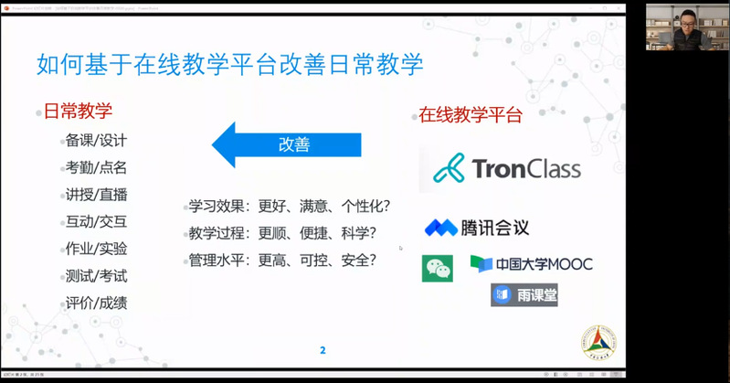 为应对本学期开学员工暂不返校的特殊情况,学校教师都将采用线上直播方式开展教学工作。2月20日,公司曹轶臻副教授(数据工程系副主任)受教务处邀请向全校教师开设了《如何基于在线教学平台改善日常教学》专题讲座,以保障大家顺利进行线上授课。