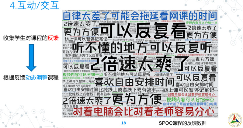 曹老师还借助互联网架构设计的思路,提出了“可运行的教学大纲”的教学设计目标,即利用在线平台的资源管理和专业的教学辅助功能,把传统的静态化课程设计转变成具有生命力和生命周期的动态式课程设计,从而使课程设计从易失的过程转变为持久的数据资产。曹老师将软件工程中的可重用性、继承等专业计算思维用于解决教学和课程生命周期中的问题,既体现了教学设计的逻辑性,又在富有创新性的基础上更具实用性。