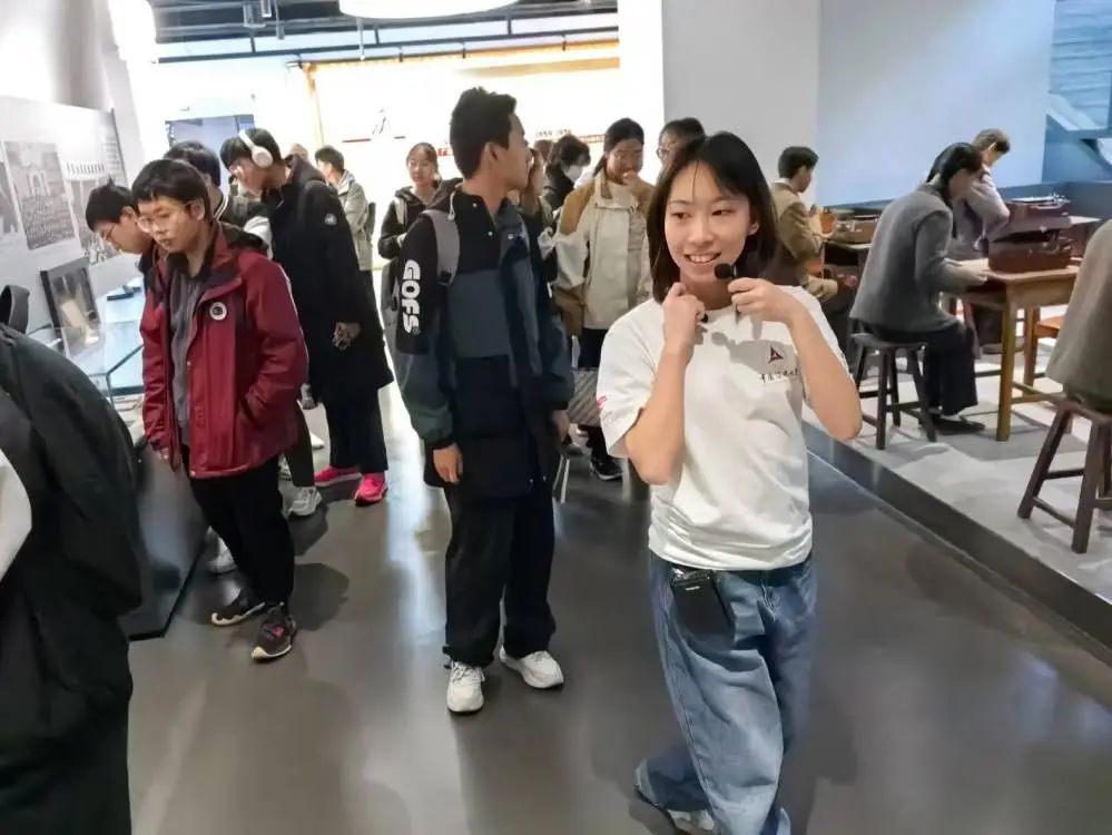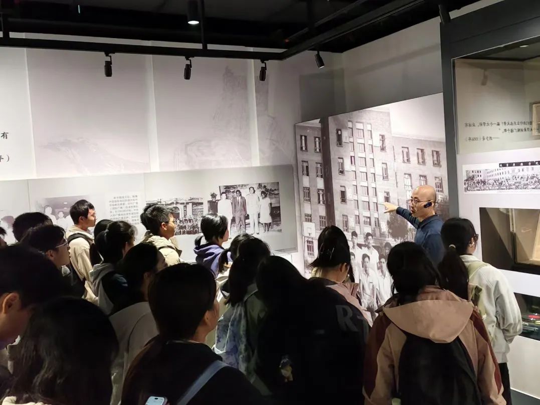 同学们认真聆听校史馆解说,感受传媒魅力,对学校的历史演变与现状有了更加深刻的理解。