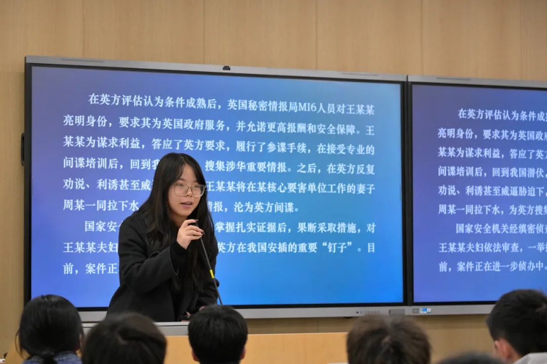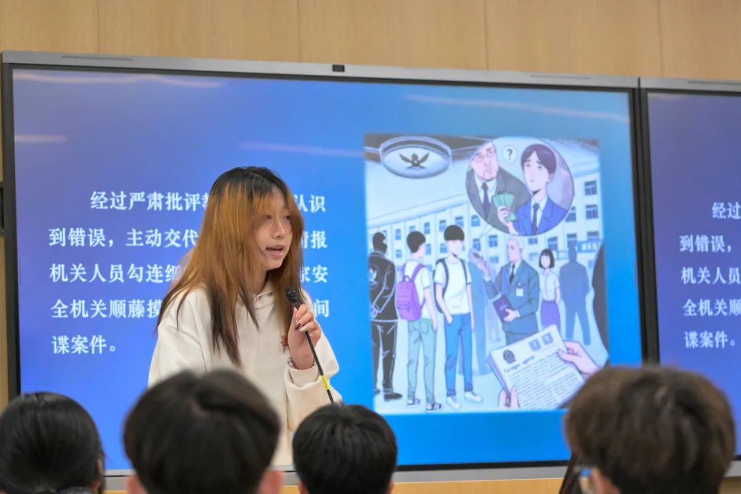 该环节中,同学们就一些常见的有关国家安全的言论进行了辨析。