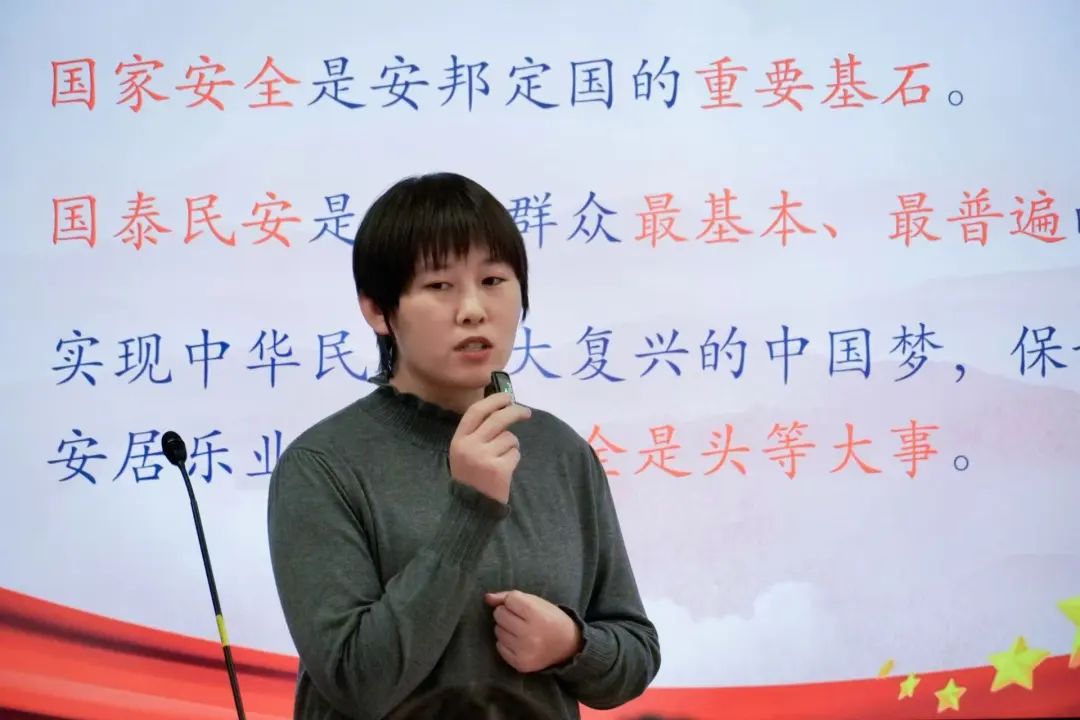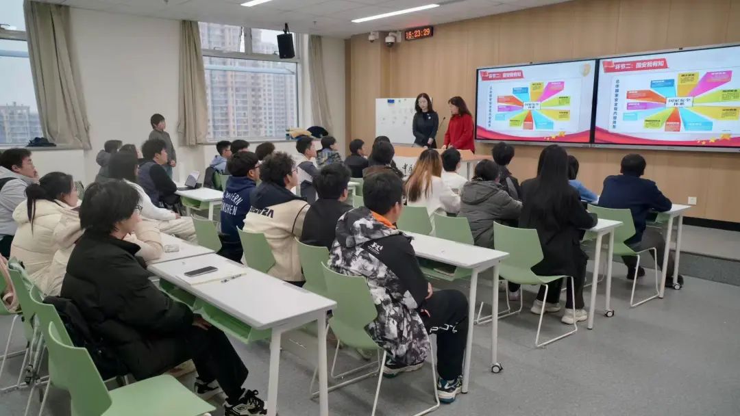 随后,丁晨溦老师为同学们讲解了国家安全的准确定义——国家安全是指国家政权、主权、统一和领土完整、人民福祉、经济社会可持续发展和国家其他重大利益相对处于没有危险和不受内外威胁的状态,以及保障持续安全状态的能力。同时,她带领同学们回顾了我国近年来在国家安全方面所做出的重要决策和政策布局,使同学们深刻意识到保障国家安全始终是党和国家的重大任务,也是维护国家稳定和人民幸福的重要基石。