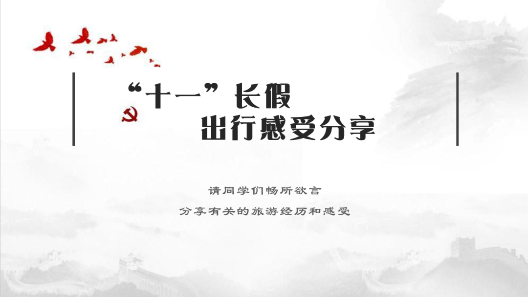 主题教育学习之后,同学们进行相互交流,并分享自己在国庆期间的出行见闻。