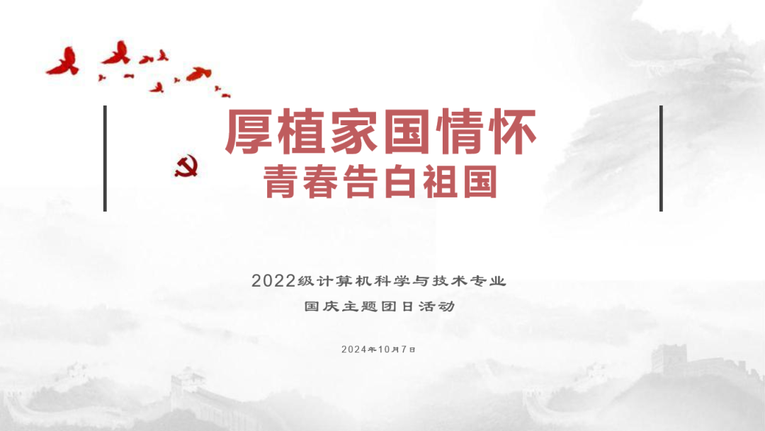 为了弘扬伟大的爱国主义精神,yl23455永利集团2022级计算机科学与技术班团支部,于2024年10月7日在48教开展主题为“厚植家国情怀,青春告白祖国”的主题团日活动。同学们一起学习爱国主义精神,并分享在国庆期间的见闻。
