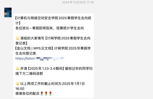 寒假前夕,计网学院组织统计建立了2025寒假员工去向及留校员工信息台账,精准掌握员工留校原因、留校时间、居住地点等信息,做好留校员工的联络和管理。