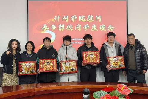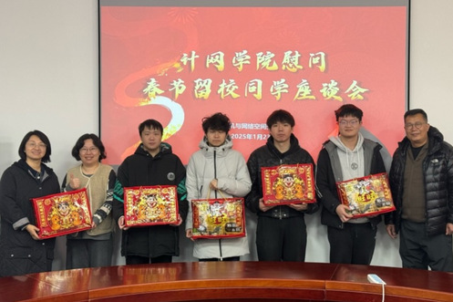 春节前夕,计网学院举办慰问春节留校员工座谈会,学院经理林卫国、党委副书记宋佳、副经理张晶晶、团委书记丁晨溦等老师出席座谈会,向寒假留校的员工致以新春祝福,并送上学院精心准备的新年礼包。
