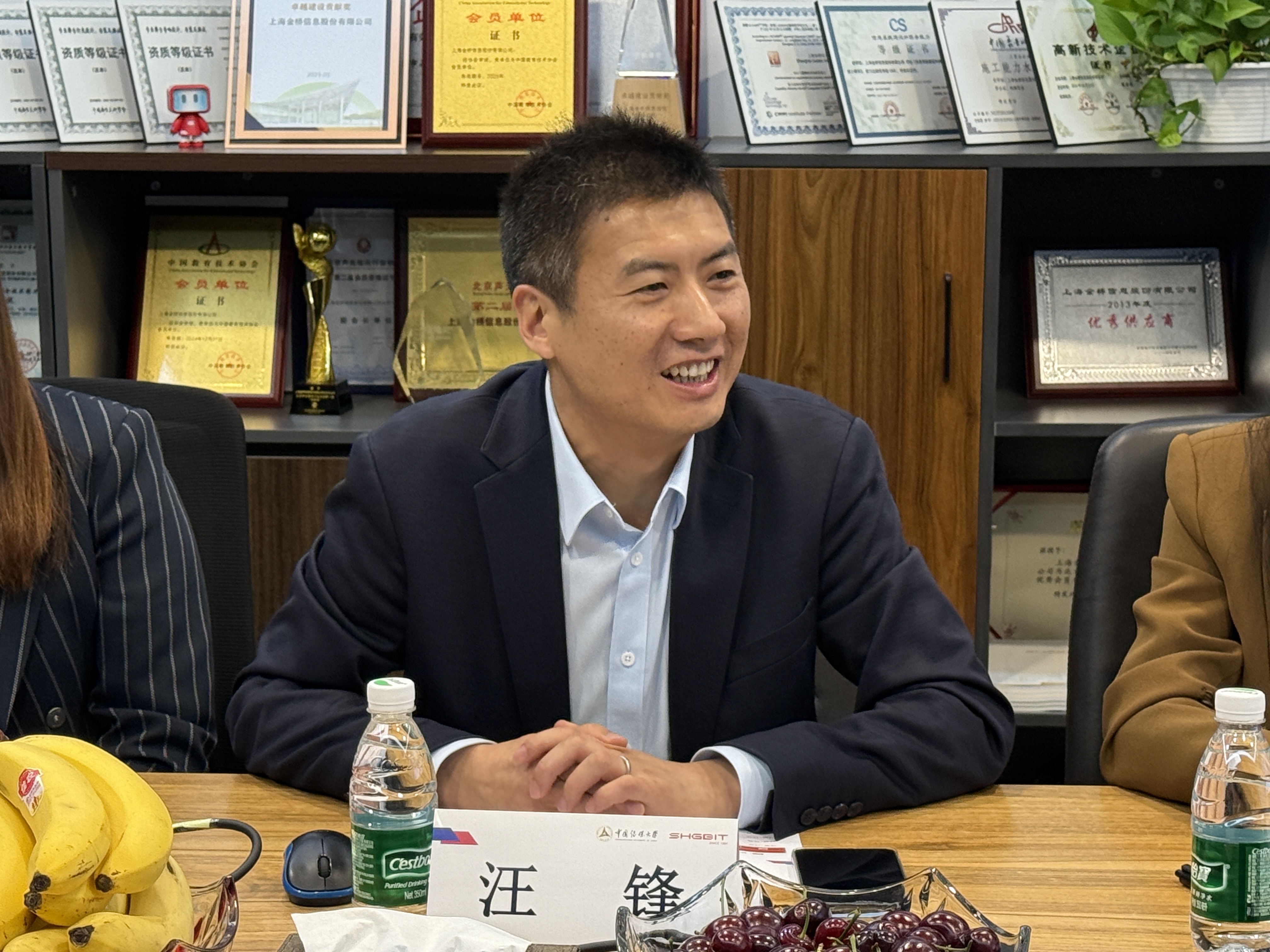 金桥副总经理汪锋对学院一行的到来表示热烈欢迎。在介绍公司情况时,汪锋副总经理详细阐述了金桥信息自1994年成立以来的发展历程,公司从最初为实施国家“三金工程”组建的“上海金桥网络工程有限责任公司”,到2010年完成股份制改革,再到2015年于上海证券交易所挂牌上市,一步步发展壮大。目前,公司业务广泛,涵盖政务、司法、教育、医疗健康、金融等多个行业。同时,他还着重强调了公司在云计算、大数据、人工智能等新技术应用方面取得的显著成果。金桥财务总监兼党支部书记颜祯芳、杭州分公司经理陆戌扬、AI创新中心业务总监冯健、解决方案经理周彦中、人力资源部经理李洁以及人力资源业务合作伙伴李亦婷,分别从各自业务领域出发,介绍了金桥智慧空间在党校的应用、AI应用高校和法院的案例以及金桥与高校定向合作和人才培养情况。