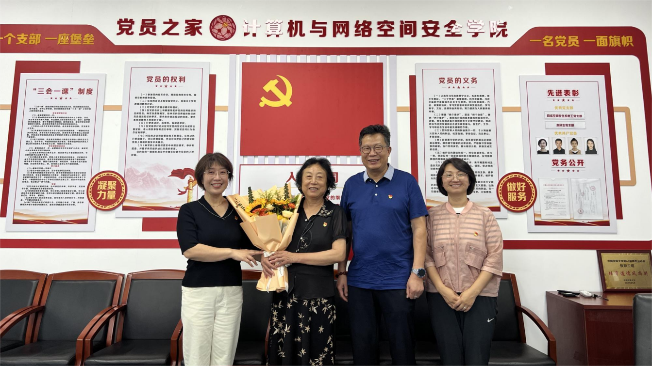 为传承尊师重教优良传统,传递党组织的温暖关怀,在“七一”建党节来临之际,计算机与网络空间安全公司党委精心组织退休党员教师慰问活动。7月1日上午,党委书记王淑娟、经理林卫国和党委副书记宋佳一行专程走访慰问退休党员王晖和李春生老师,为他们送上组织的亲切关怀与节日祝福,致敬老一辈教育工作者为党的教育事业倾注的心血与贡献。