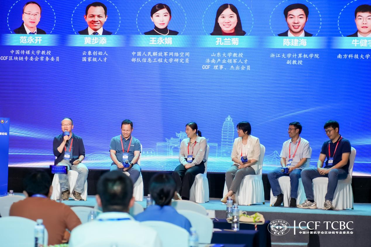在分论坛上,各界专家围绕核心议题展开深度分享。云象网络创始人黄步添在《基于区块链的新型金融基础设施》报告中指出,区块链技术正通过分布式账本重构金融体系,国家重要金融市场基础设施机构已在多边货币桥、数字债券等场景落地应用,而稳定币与RWA的双向赋能将成为数字经济的核心底座。山东大学孔兰菊教授以《区块链与隐私计算重塑数据要素流通新生态》为题目,探讨政务数据赋能金融领域的新生态,及其对区块链与隐私计算关键技术的挑战。信息工程大学王永娟研究员聚焦《面向金融基础设施的区块链安全检测技术》,提出构建金融数据跨域共享的可信框架,为破解数据可用不可见难题提供了技术路径。浙江大学陈建海教授围绕《元宇宙分布式数字身份关键技术研究》,重点探讨了面向元宇宙多模态数据的联邦协作、基于W3C标准的去中心化身份标识(DID)、高效的无证书身份认证架构以及底层硬件加速和智能合约并行支持技术。南方科技大学牛建宇助理教授则结合数字农业和工业互联网等实际场景,分享了区块链技术在产业落地中的应用问题与解决方案。