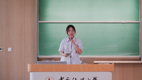 院团委副书记曹玉蕾首先诚挚感谢各位老师在本学期对团学工作的大力支持与帮助,随后对一学期以来的工作情况进行了全面的回顾与总结。最后,她向全体同学送上温暖的祝福,期望大家在期末备考中全力以赴,沉着应对各项考试,争取取得理想成绩,为这一学期的学习与生活画上圆满的句号。