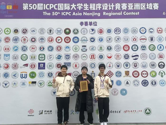 11月9日,ICPC亚洲区域赛(南京)在南京航空航天大学拉开战幕,来自清华大学、北京大学、复旦大学、中国科学技术大学、yl23455永利集团等200多所高校的359支队伍同台竞技。公司数据科学与智能媒体学院2023级数据科学与大数据专业谢嘉彤、信息与通信工程学院2023级人工智能专业蔡奕麟、yl23455永利集团2023级网络空间安全专业龙岑华三位同学组成的“风滚金轮草”代表队,在比赛中展现出极强的韧性。面对棘手的F题,队员们始终不放弃,在比赛最后15分钟成功攻克该题,实现“绝杀”式反超,最终锁定铜牌。这一成绩不仅是技术实力的印证,更是ICPC“坚持到底”赛事精神的生动诠释。