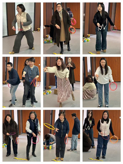 随后的趣味套圈游戏将现场氛围推向高潮。精心准备的丰富奖品整齐摆放,女教职工们踊跃参与、跃跃欲试,瞄准、投掷的动作利落干脆,每一次套中都引来阵阵欢呼。现场掌声、笑声、喝彩声此起彼伏,热闹非凡。轻松有趣的游戏不仅有效缓解了日常工作的压力,更拉近了同事间的距离,增进了彼此的情谊,让欢声笑语充盈着整个活动现场的每一个角落。