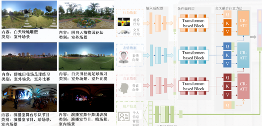 此外,课题组针对沉浸文旅内容虚实融合的流畅度与交互性,研发了“三维全景虚实融合工具”。该工具引入基于低秩表示的3D高斯散射(3DGS)技术,有效降低渲染时延,使虚拟元素在复杂的文旅实拍全景视频中,也能保持极高的视觉一致性与交互稳定性。课题组进而针对多感官模态文旅内容的自适应融合需求,建成包含120个高质量全景视频序列的“沉浸式内容质量评价视频数据库”,为多模态内容的感知呈现一致性提供了科学的评价准则,还构建了视觉/听觉/触觉“多模态虚实交互融合体验评价网络”,实现沉浸式内容用户多感官体验融合评价分析。